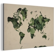 Wanddecoratie Metaal - Aluminium Schilderij Industrieel - Wereldkaart - Bladeren - Groen - 90x60 cm - Dibond - Foto op aluminium - Industriële muurdecoratie - Voor de woonkamer/slaapkamer