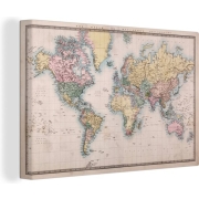 Canvas Wereldkaart - 150x100 - Wanddecoratie Wereldkaart - Pastel - Textiel