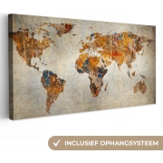 Canvas Wereldkaart - 180x120 - Wanddecoratie Wereldkaart - Vintage - Bruin - Educatief