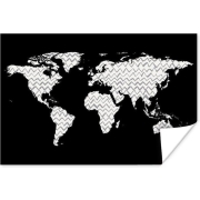 Fotolijst incl. Poster - Wereldkaart - Grijs - Patroon - 90x60 cm - Posterlijst