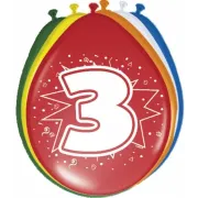 Ballonnen ster 30 cm: 3 jaar - 8 stuks (08203)