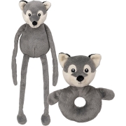 Pluche dieren setje wolf knuffel rammelaar van 15 cm en fluffy knuffeldier 33 cm. Combinatie van een knuffel rammelaar een baby/peuter knuffel. Geschikt voor baby en peuter, dus o.a. leuk als…