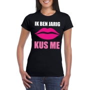 Ik ben jarig kus me t-shirt zwart dames. Dit verjaardags t-shirt heeft een print van een roze mond en de tekst Ik ben jarig, kus me! Materiaal: 150 grams, 100% katoen. Voordelen van dit…