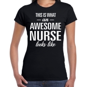 Awesome nurse - geweldige verpleegster / zuster cadeau t-shirt zwart dames. Op dit zwarte shirt staat groot de tekst: This is what an awesome nurse looks like. Kent u een geweldige…