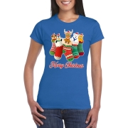 Foute Kerst t-shirt kerstsokken merry christmas blauw voor dames 2XL -