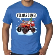 Grote maten foute Kerst T-shirt Monstertruck Santa blauw voor heren. Deze plus size Kerst shirt / t-shirt is bedrukt met de afbeelding van de kerstman op een monster truck en de tekst: Vol gas…