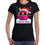 Fout t-shirt zwart voor dames. Dit shirt is bedrukt met de afbeelding van een roze coole kerstbal en de tekst: Christmas Party. Dit t-shirt / shirt is leuk om te dragen tijdens een kerstborrel of…