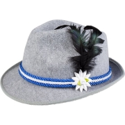 Verpakkingsinhoud: Tiroler Hoed Blauw Aantal: 1 stuk Maat: volwassenen (vanaf 14 jaar) Kleur: grijs/blauw Materiaal: polyester…