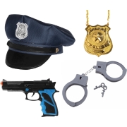 Politie agent verkleed set voor kinderen. Een 4 delige accessoires set bestaande uit een politie politiepet in het blauw(kindermaat), een setje handboeien, een badge en een pistool. Je kan verder…