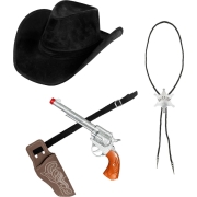 Sheriff verkleedset bestaande uit 1x hoed in de kleur zwart, 1x holster inclusief 1x revolver/pistool en 1x ketting met sheriff ster in de kleur zilver. Deze western verkleedset is geschikt voor…