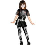 Halloween thema juwelen skelet jurkje voor meisjes. Zwart met witte skelet jurkje met zilver accenten. De afgebeelde skelet is gevormd middels juwelen. Inclusief: panty. Carnavalskleding voor…