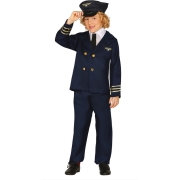Piloot verkleed kostuum - voor kinderen - blauw - pilotenpak - 3-delig 5-6 jaar (110-116) -