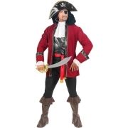Piraat Roofeiland Captain Kirk Kostuum Man - bevat: Jas, vest met kraag, broek, riem, schoenhoezen, hoed, ooglapje…