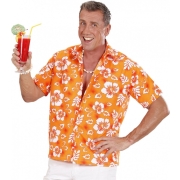 Widmann Hawaii blouse - oranje met witte bloemen - heren - Tropisch themafeest XL -