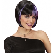 Boblijn pruik zwart met paars. Deze zwarte boblijn pruik is een kort model met pony. Deze sexy zwart met paarse accenten boblijn pruik voor dames is geschikt voor bijvoorbeeld om uw hippie of…