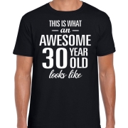 Awesome 30 year - geweldige 30 jaar cadeau t-shirt zwart heren. Op dit zwarte shirt staat groot de tekst: This is what an awesome 30 year old looks like. ken jij iemand die binnenkort 30 (…
