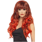 Carnaval verkleed dames pruik - krullen rood - lang haar - heksenpruik -