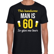 Verjaardag cadeau t-shirt 60 jaar - this handsome man is 60 give beer zwart voor heren XS -