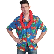 Verkleed feest blouse/overhemd Maui - blauw - Hawaii print - heren - Tropische party 48-50 (S/M) -