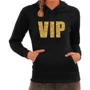 VIP goud glitter tekst hoodie zwart dames S -