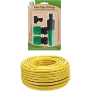 Tuinslang professional van 25 meter lengte en een standaard diameter van 13mm in de kleur geel. Inclusief koppelstukken en spuit. Kruislings gewapend, dus gaat niet zo snel knikken. Merk: Hendrik…