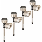 4x Buitenlamp/tuinlamp LED solar verlichting op zwarte steker/grondpin/grondpen, type Jive. Verlicht het tuinpad/looppad of licht een plantenborder uit met meerdere van deze lampen. De lampen zijn…
