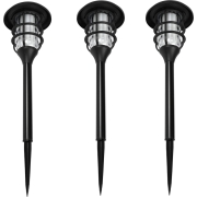 Solar tuinlamp - 3x - zwart - LED flame effect - oplaadbaar - D12 x H43 cm -