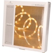 Kerstverlichting LED lichtslang 216 lampjes gekleurd 9 meter IP44. Transparante lichtslang met 216 multi-colour lampjes. Lengte: 9 meter. Lengte aanloopsnoer: 1,5 meter. Kleur…