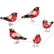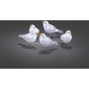 Verlichte decoratie LED Set van 5 acryl vogeltjes van 10 bij 6 cm van Konstsmide. De vogeltjes hebben elk 8 koud witte LEDs en zijn met een snoer met steeds 1 meter tussenruimte aan elkaar verbonden…