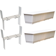 Set van 4 plantenbakken bruin rechthoekig 60 cm met 8 verstelbare railing beugels. Afmeting plantenbak: 60 x 17,5 x 14,5 cm. Materiaal plantenbak: polypropyleen (plastic/kunststof). Beugels te…