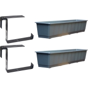 Set van 4 kunststof plantenbak grijs rechthoekig 80 cm met 8 verstelbare balkon/muurbeugels -