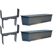 Set van 4 plantenbakken grijs rechthoekig 80 cm met 8 verstelbare railing beugels. Afmeting plantenbak: 80 x 17,5 x 14,5 cm. Materiaal plantenbak: polypropyleen (plastic/kunststof). Beugels te…