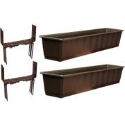 Set van 4 kunststof plantenbakken bruin rechthoekig 60 cm met 8 verstelbare balkon/muurbeugels -