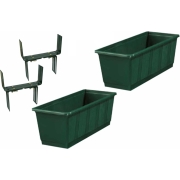Set van 4 kunststof plantenbakken donkergroen rechthoekig 60 cm met 8 verstelbare railing beugels -