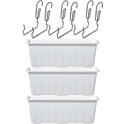Set van 5 plantenbakken wit rechthoekig 40 cm met 10 verstelbare railing beugels. Afmeting plantenbak: 40 x 17,5 x 14,5 cm. Materiaal plantenbak: polypropyleen (plastic/kunststof). Beugels te…