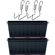Set van 4 plantenbakken grijs rechthoekig 60 cm met 8 verstelbare railing beugels. Afmeting plantenbak: 40 x 17,5 x 14,5 cm. Materiaal plantenbak: polypropyleen (plastic/kunststof). Beugels te…