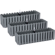 Plantenbak/bloembak Fence look - 3x stuks - kunststof - steengrijs - 58 x 18 x 16 cm -