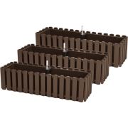 Plantenbak/bloembak Fence look - 3x stuks - kunststof - houtbruin - 58 x 18 x 16 cm -