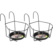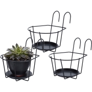Balkon bloempothouder - 3x - bloembak met ophanging - zwart metaal - 17 cm - rond -