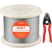 VEVOR roestvrijstalen staalkabel φ3,2 mm 152,4 m lengte, staalkabel gemaakt van roestvrij staal 316 met een breeksterkte van 798 kg, 1x19 strengen, staalkabel voor terrasleuningen, tuinhekken, incl. draadkniptang