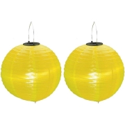 2x stuks Gele solar lampionnen van 30 cm. Vrolijk gekleurde lampionnen welke werkt op zonne-energie. Materiaal: polyester. Diameter: 30 cm. Solar buitenlamp/buitenverlichting. Feestartikelen…