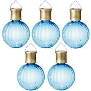 Solar lampion voor buiten - 5x - LED - blauw - 11 cm - buitenverlichting -