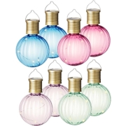 Set van 9x stuks buitenlamp/tuinlamp led solar verlichting hanglamp lichtroze, blauwe en groene lampion. Verlicht het tuinpad/looppad of hang het lampionnetje op in een boom of langs de rand van een…