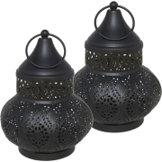 2x stuks tuin decoratie lantaarn in mooie Marokkaanse of 1001 nacht thema sfeer stijl. Geschikt voor kaarsen. Kleuren: zwart/goud. Afmetingen: D12 x H16 cm. Gemaakt van decoratief metaal.…