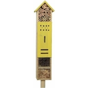 Insectenhotel huisje op paal/steker - geel - 118 cm -