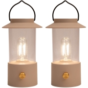 Camping tafellamp/lantaarn Darcy - 2x - beige - 24 cm - dimbaar - draadloos/oplaadbaar USB - buiten -