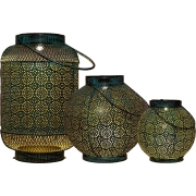 Solar lantaarn set - 3-delig - antiek - turquoise - metaal - 16 x 14 / 19 x 18 / 16 x 26 cm -