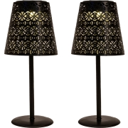 Tafellamp buiten - 2x - D12 x H28 cm - zwart - metaal - solar lantaarn -