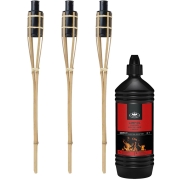 10x Bamboe fakkel met lont 60 cm en olie 1 L pakket -