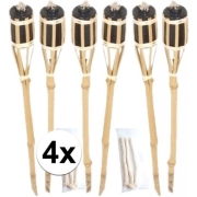 4x stuks Bamboe tuinfakkels 90 cm inclusief 1 liter lampenolie/fakkelolie. De fakkel beschikt over een metalen oliereservoir welke gemakkelijk navulbaar is. Formaat: 90 cm hoog. Materiaal: Bamboe/…